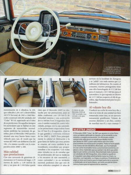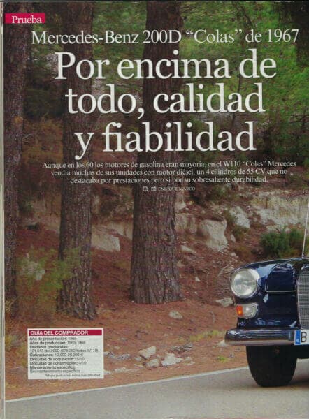 Dieser Mercedes wurde von dem renommiertesten spanischen Auto-Magazin „Coches Clasicos“ aus unzähligen anderen baugleichen Mercedes-Modellen auserwählt. Das Ergebnis dieser Berichterstattung in diesem Auto-Test ist grandios – wie auch dieser Mercedes, über den dort in diesem Fachblatt ausführlich und genussvoll berichtet wird. Es handelt sich allerdings nicht um eine kraftstrotzende Luxus-Limousine von Mercedes-Benz, sondern um den „besten seiner Art“. Und diese „Art“ definiert sich hiermit wie folgt: Ein „dezenter edler Benz“ ohne das Imponiergehabe von überdimensionierten Dinosauriern aus dem Mercedes-Werk mit riesigem Hubraum und Pferdestärken bis zum Abwinken.